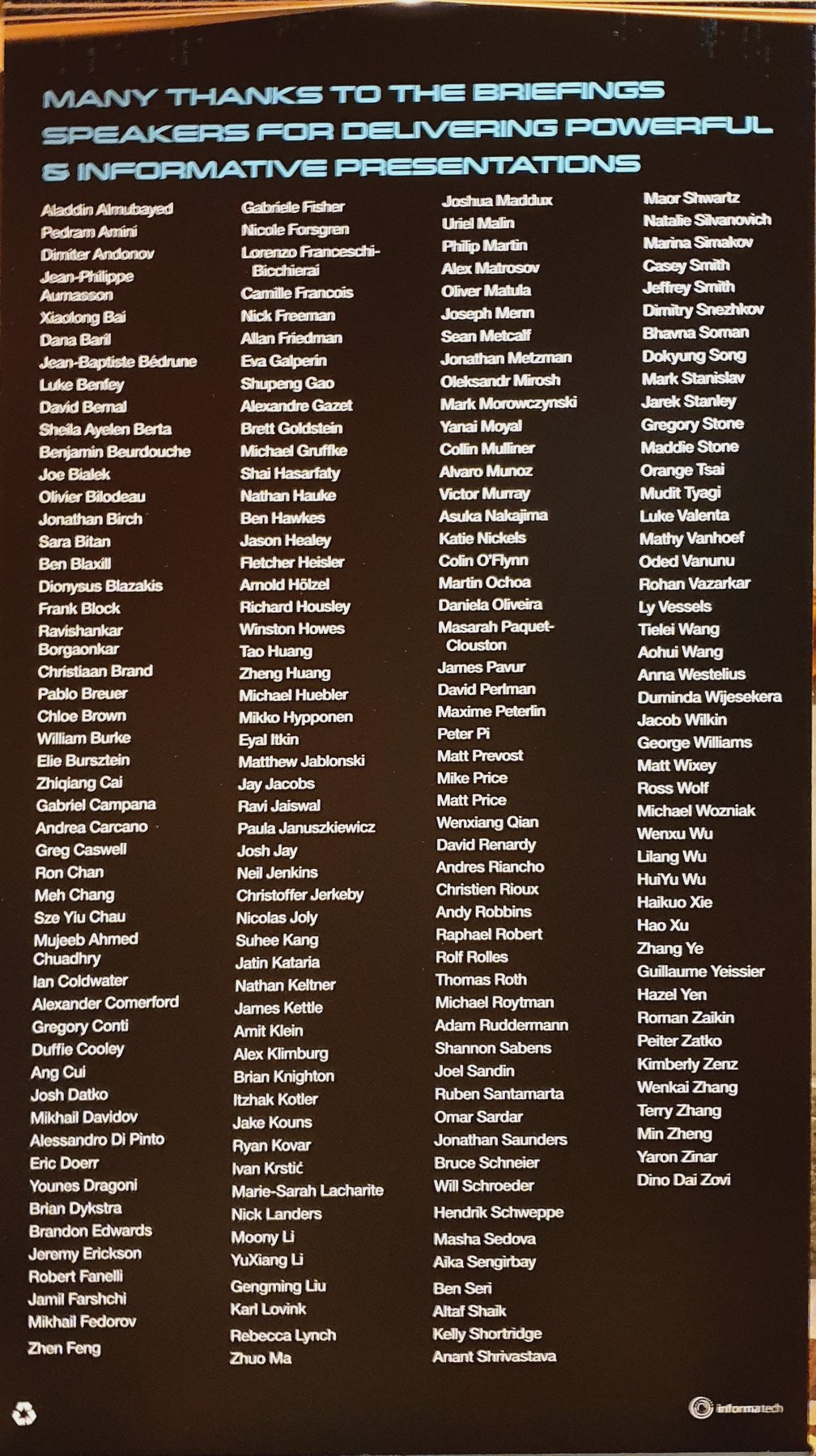 Speakers for this round in BH USA 2019. Its a hugh list i am listed as last entry in 3rd column Place: Las Vegas, Nevada (36.1675, -115.149) Address: Las Vegas, NV, US