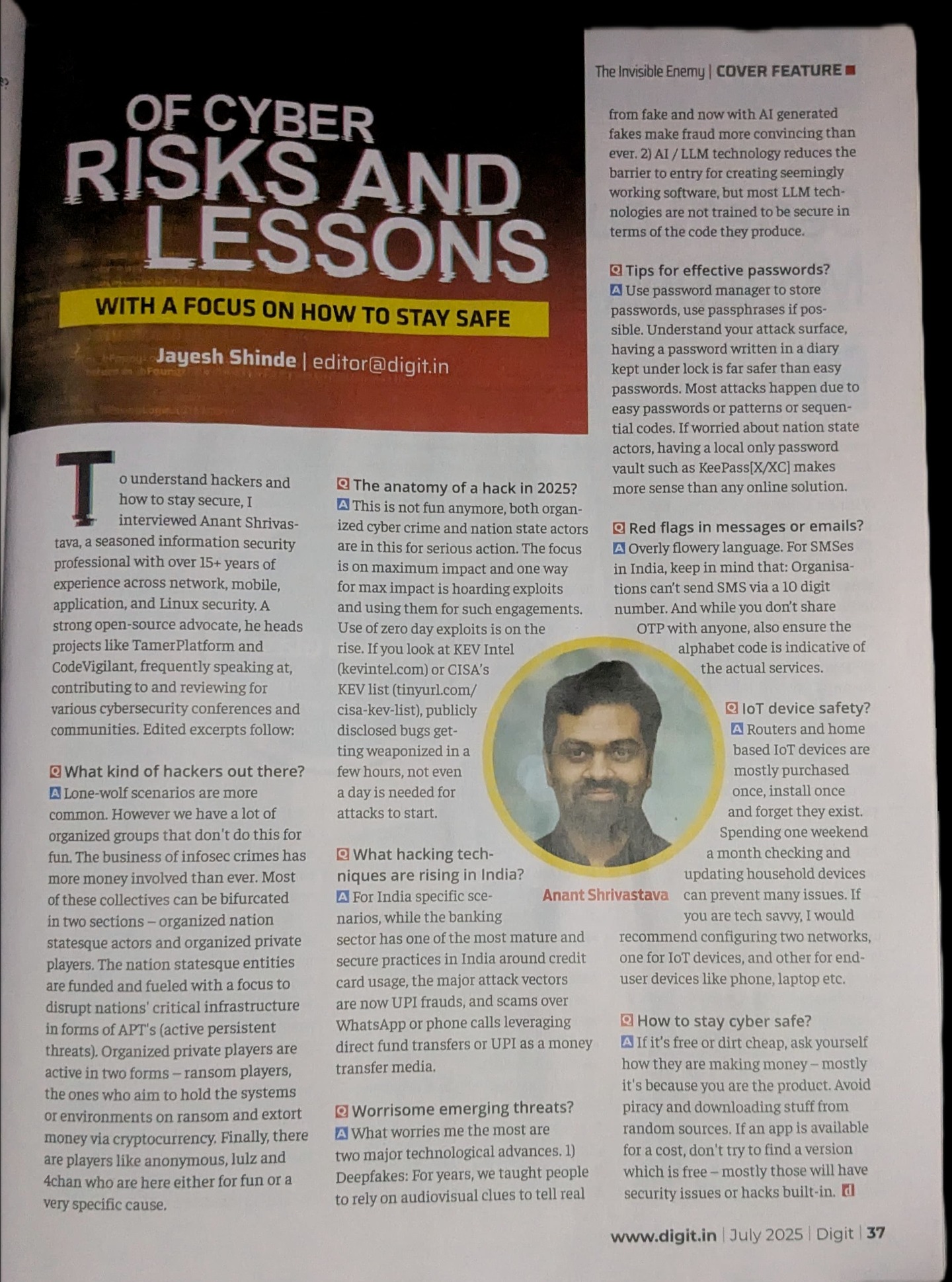 Instagram @anantshri 19 July 2025, 09:20 From reading Digit to being Interviewed in Digit. View original on Instagram → From reading Digit to being Interviewed in Digit.